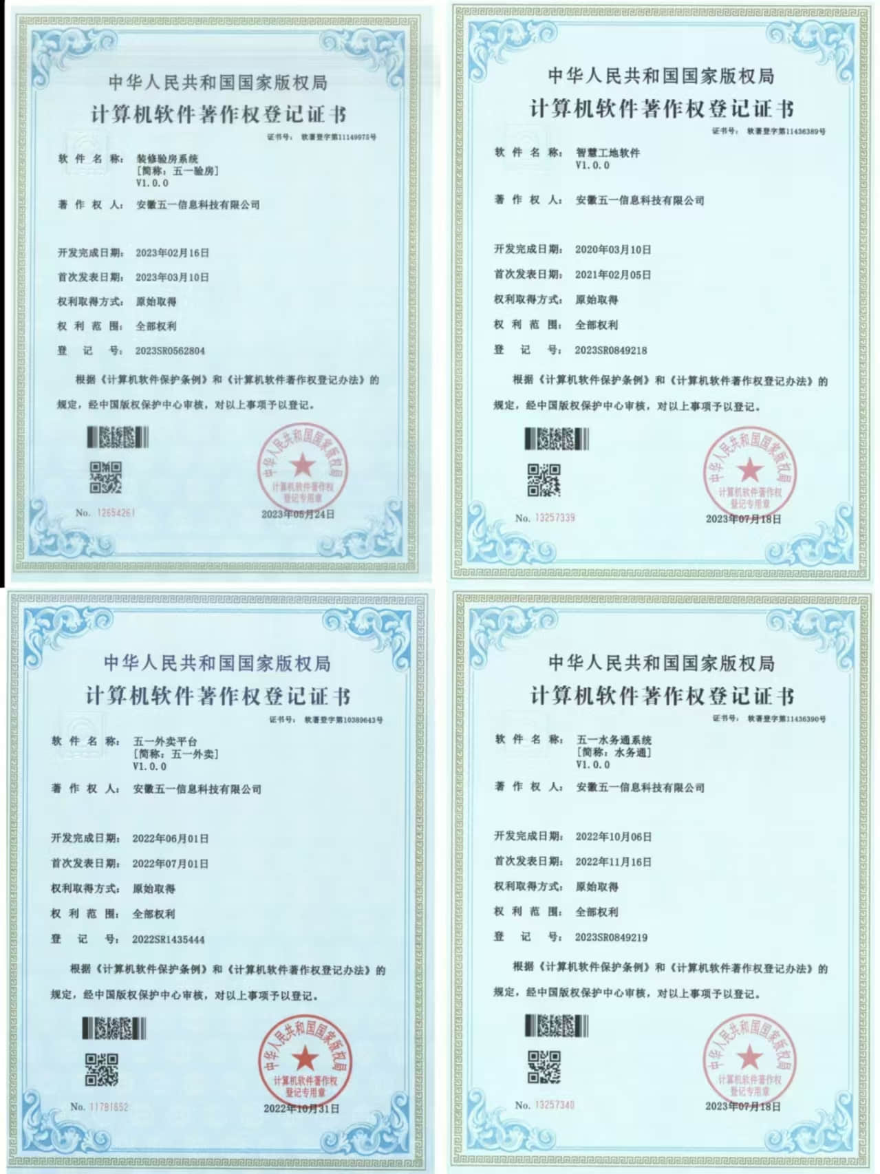 2023年5月24日,获得了装修验房系统【简称:五一验房】,是其在系统开发领域的又一拓展。
